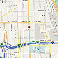 Centrally located 2 blocks West of McCormick Place & Hyatt Hotel, 1.5 miles South of the Loop, .5 miles East of Chinatown |